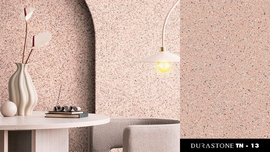 Sơn Dura Stone mang lại hiệu ứng đá tự nhiên với bề mặt sần sùi tinh tế, phù hợp với nhiều phong cách thiết kế, từ cổ điển đến hiện đại.